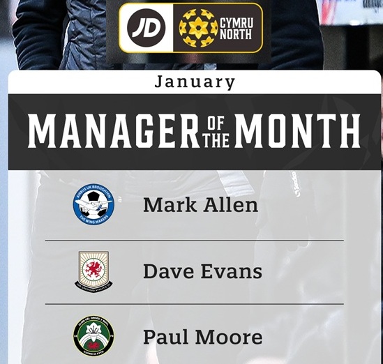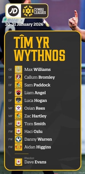 First team manager Dave Evans and players Tom Smith and Haci Ozlu have been mames in the Cymru leagues team of the week