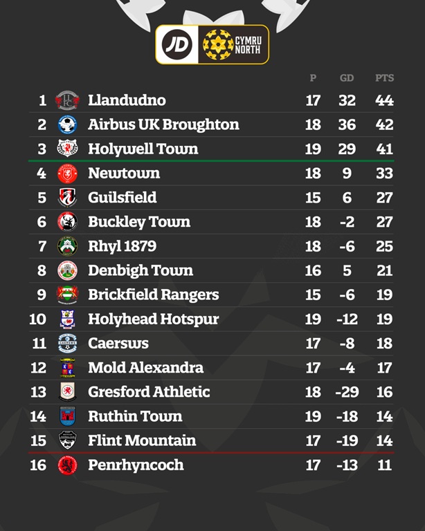 Penrhyncoch took a narrow lead into half-time after Dion Phillips’ finish, but Gresford completed a quickfire turnaround in the second half thanks to Tom Smith’s first goal since October and Mitchell Williams’ stunning strike into the top corner from distance.